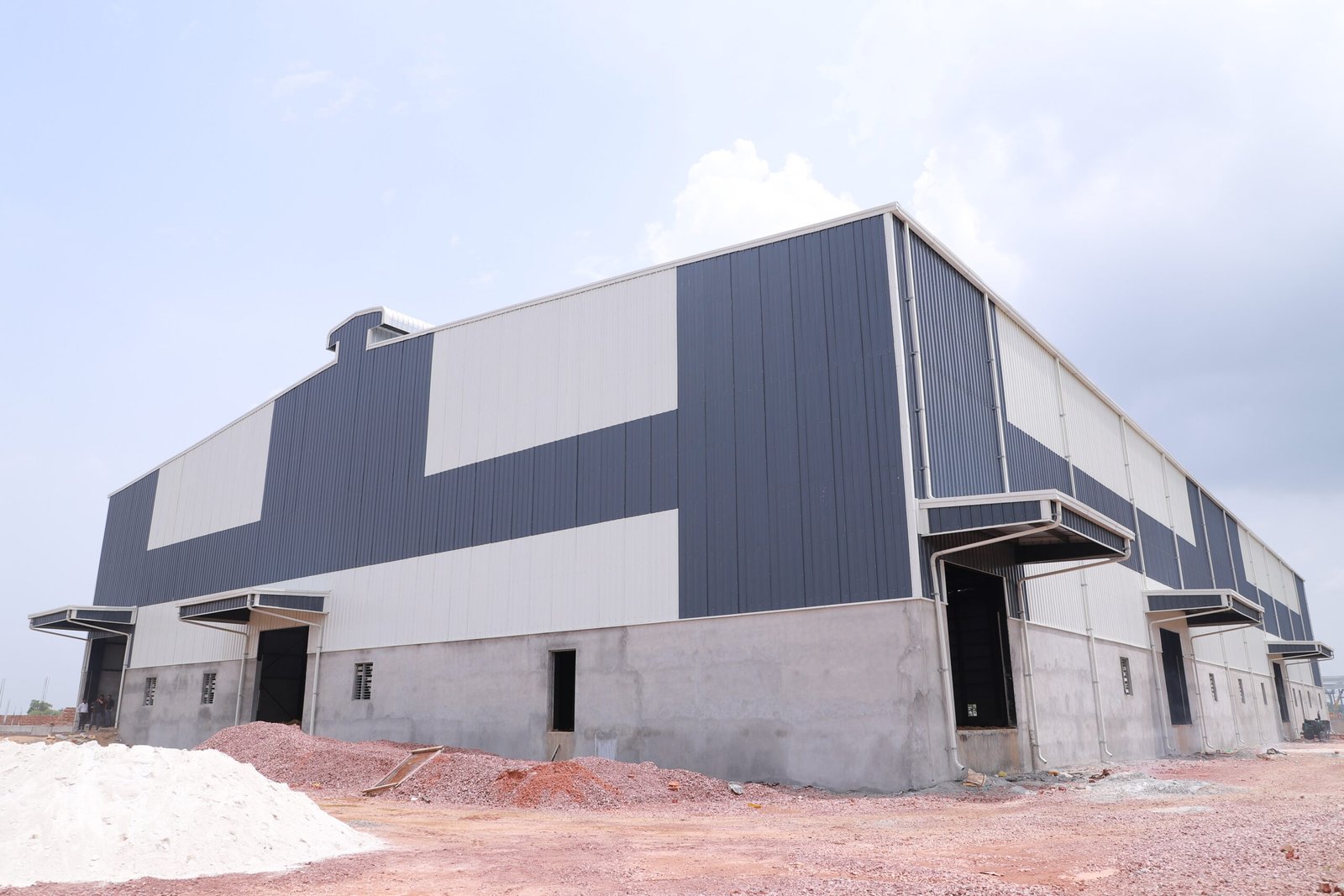 The exterior wall skin consisting of panels or sheets and their attachments, trim and weather sealents. Wall cladding shall conform to the physical specification and having minimum yield strength of 345 Mpa. Wall panels shall be of 26 gauge thick profiled Galvalume or Galvalume color coated steel sheeting. In case of pre-painted Galvalume panels, the exterior face is pre-painted with 1 mil. Thick factory applied polyester paint. The interior face is pre-painted with 0.5 mil thick factory applied polyester paint. Each panel shall provide one meter coverage and can be shipped in any length up to 12m.